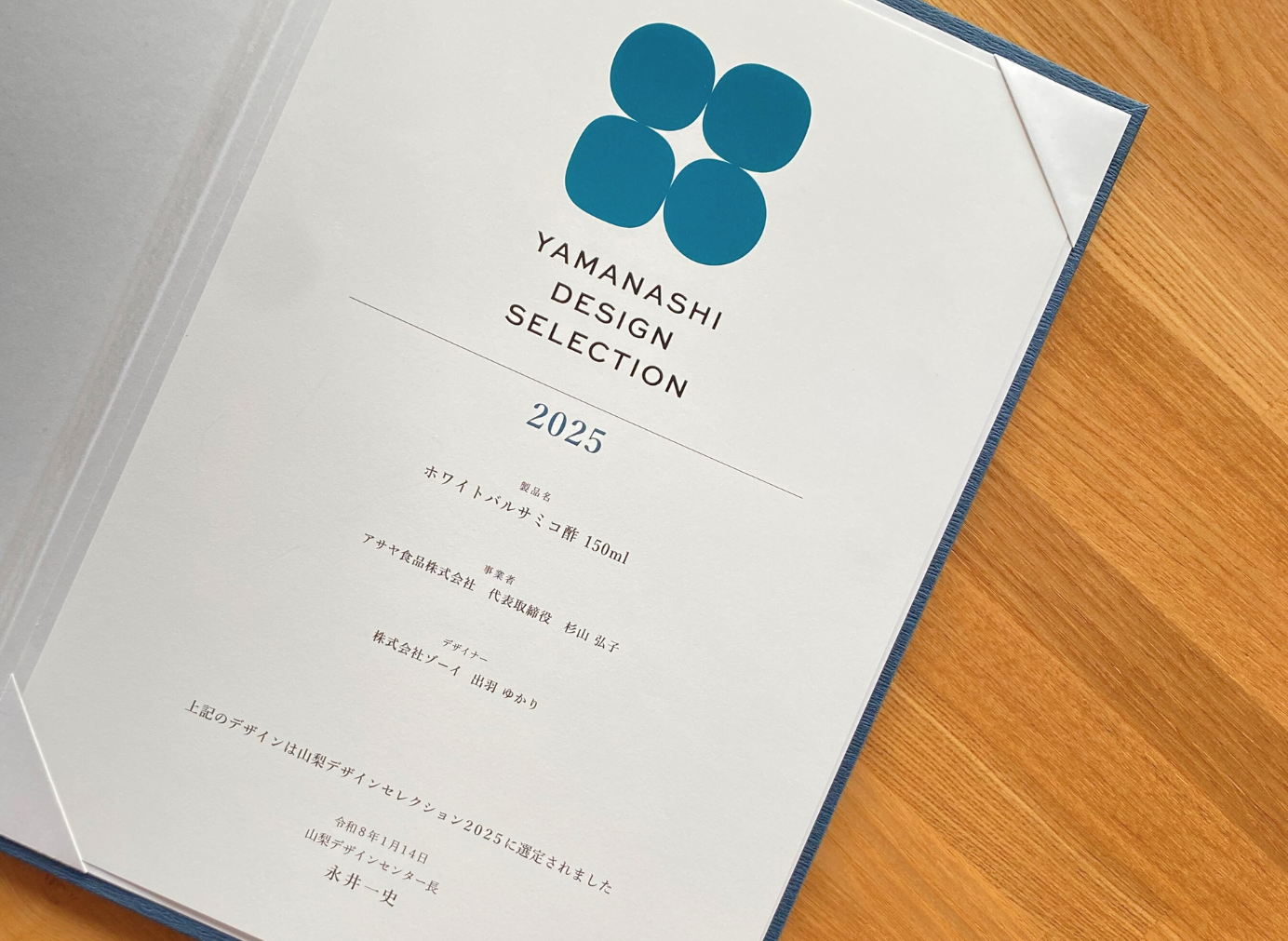 2025年度『山梨デザインセレクション』に「ホワイトバルサミコ酢」が選ばれました。