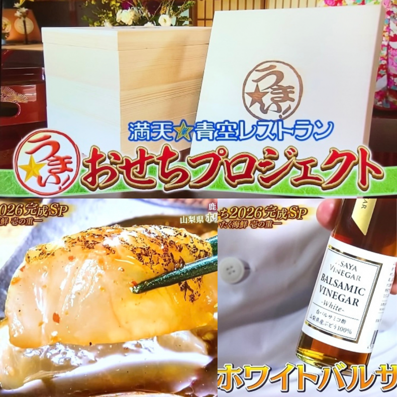 昨年10月に、日テレ系『満天☆青空レストラン』にて取り上げていただいたご縁で、「ホワイトバルサミコ酢」が『2026年の番組特製おせち』に原料として使われています。 このおせちは、この一年で番組で取り上げた全 …続きを読む