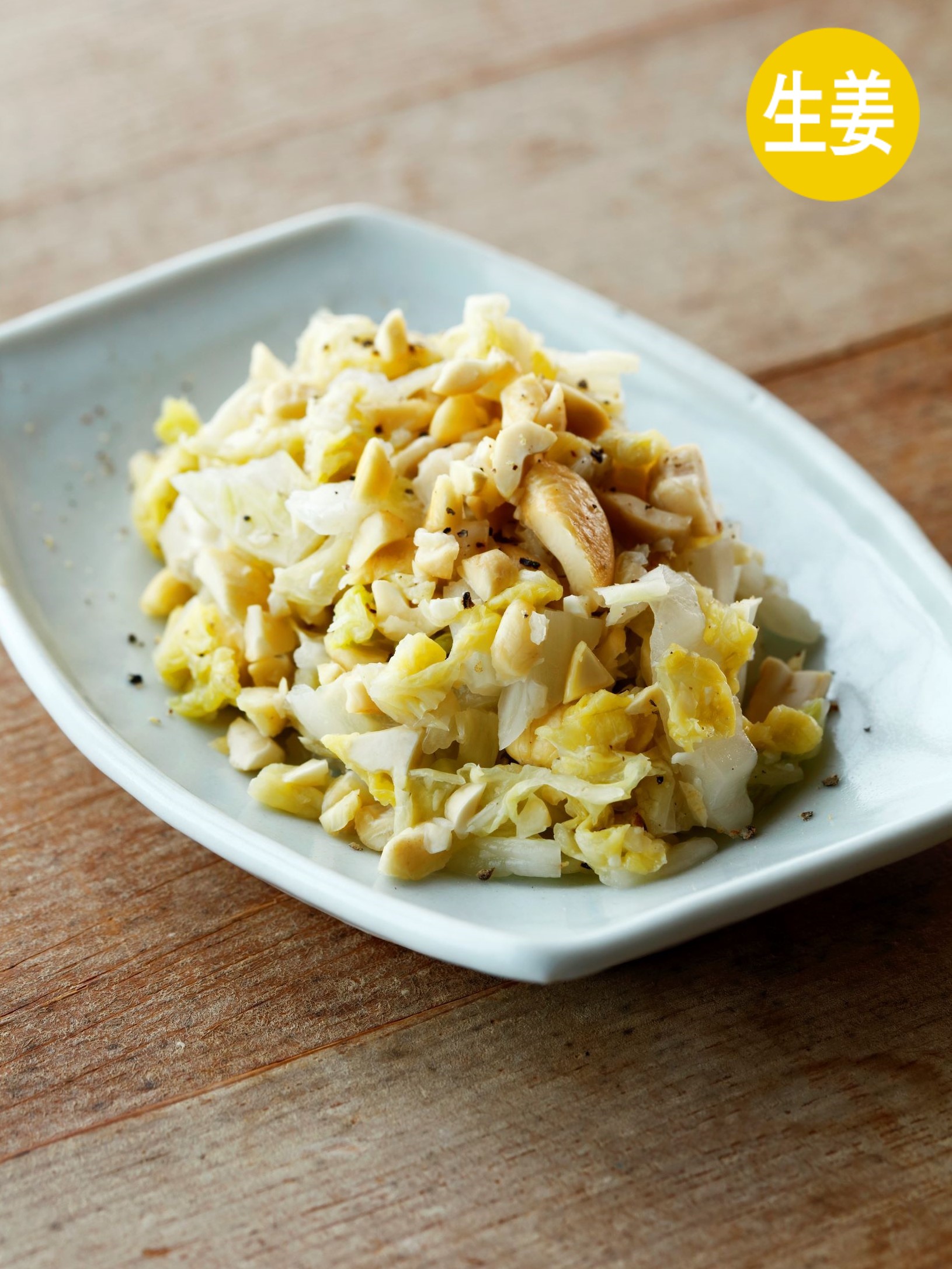 白菜の浅漬けとカシューナッツの和え物 【ドリンクビネガー 生姜】